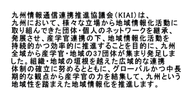 ※平成22年7月1日より,(社)九州テレコム振興センターと組織を統合し,新たに(社)九州テレコム振興センター(KIAI)として再出発いたしました.統合後の新しいホームページは