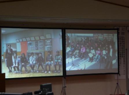スクリーン(左:九重町立淮園小学校 右:岩見沢市立第一小学校)